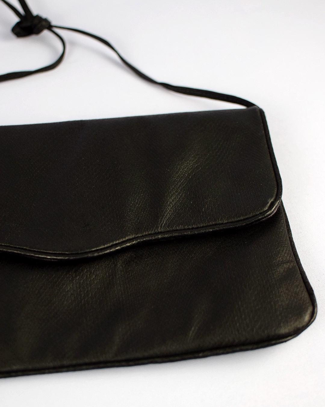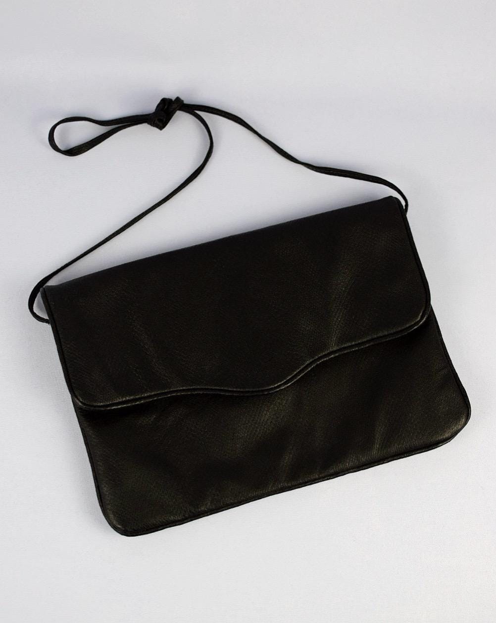 Vintage 1980s Black Faux Leather Shoulder Bag | Klee | Classic 80s Fashion