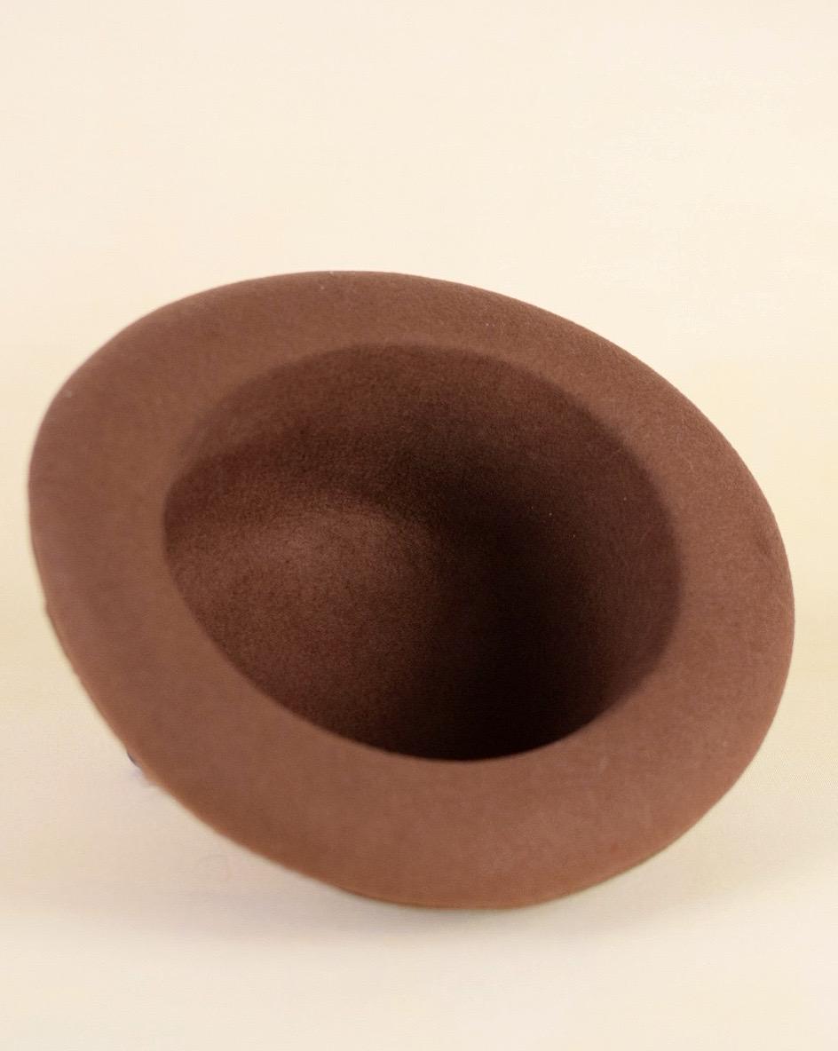 Condition: Good vintage condition; brown wool is vibrant. There are some feathers missing on the back of hat, but it is not very noticeable.