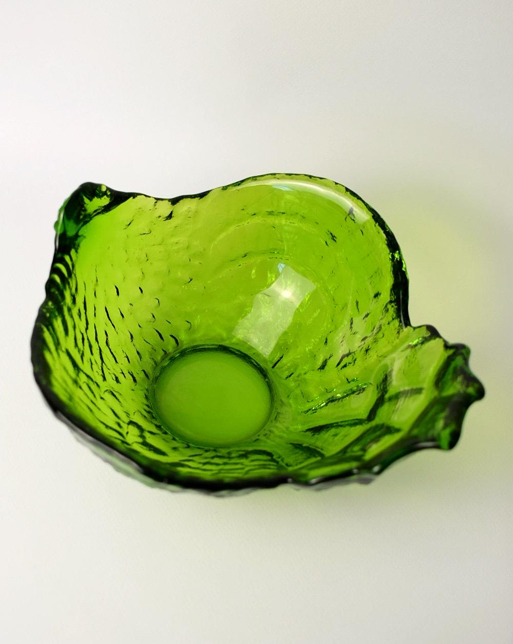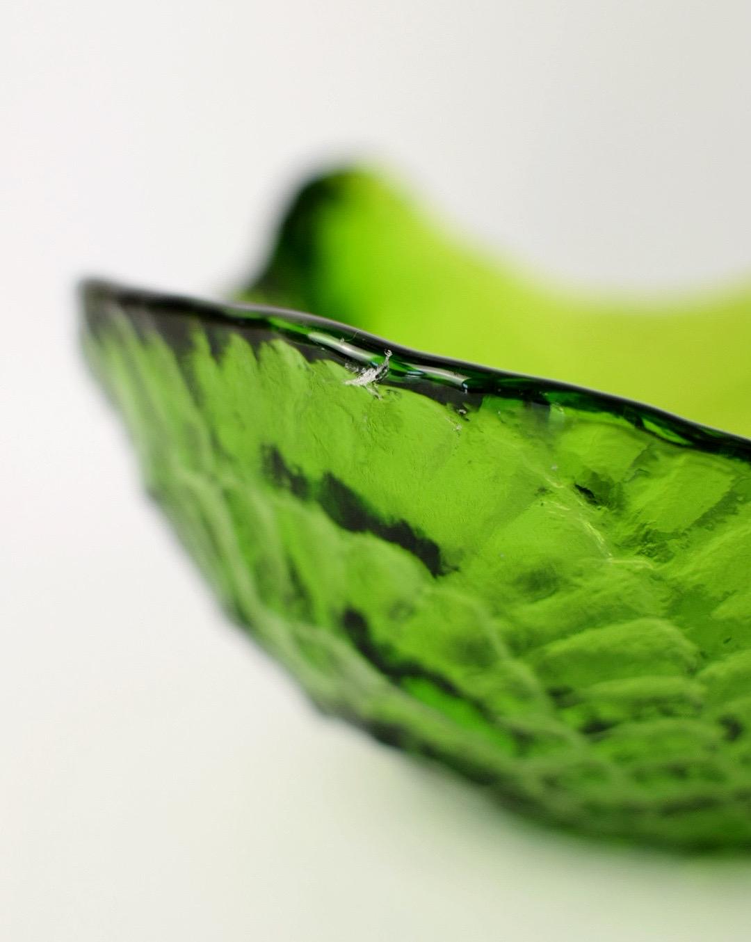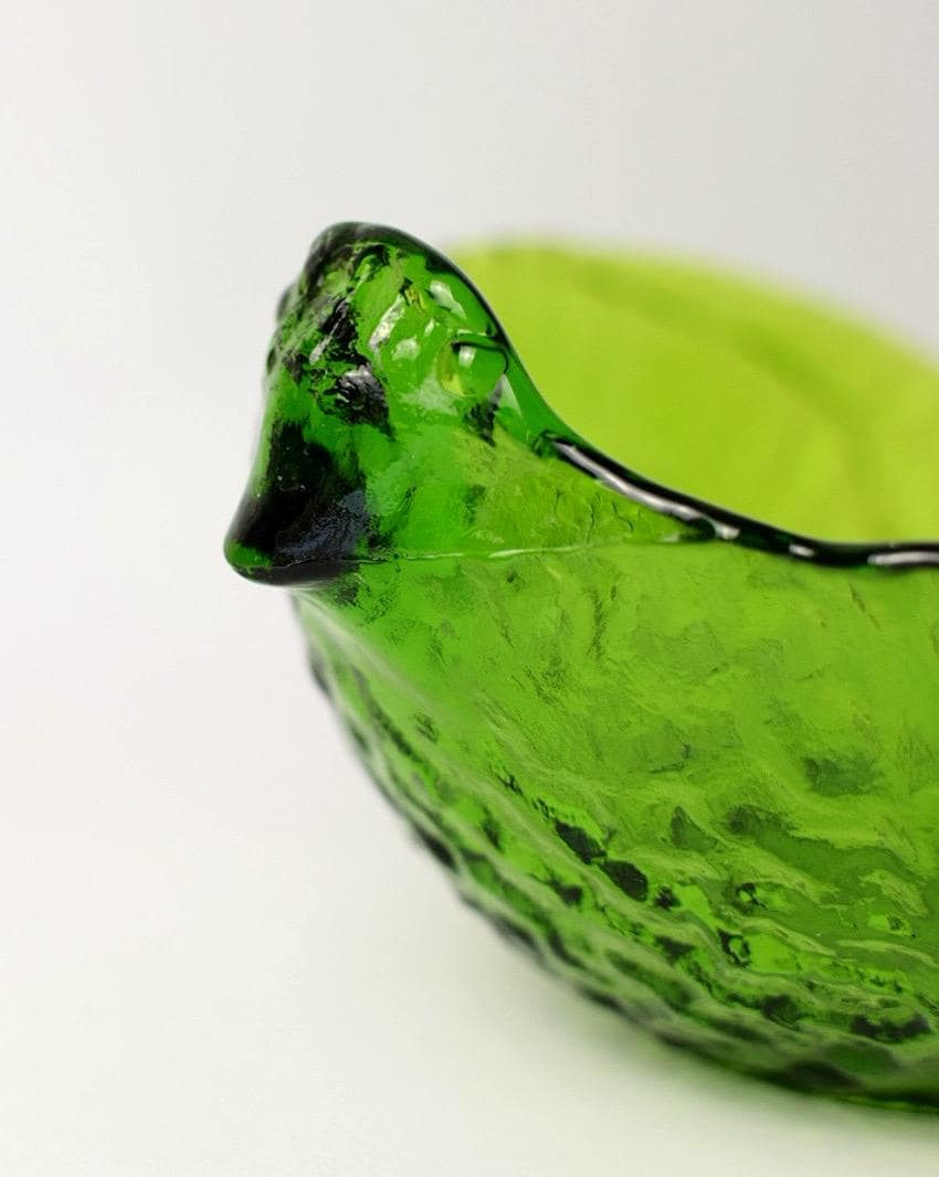 Design: Hen molded bowl in textured, vibrant green glass—classic mid‑century novelty form loved by collectors