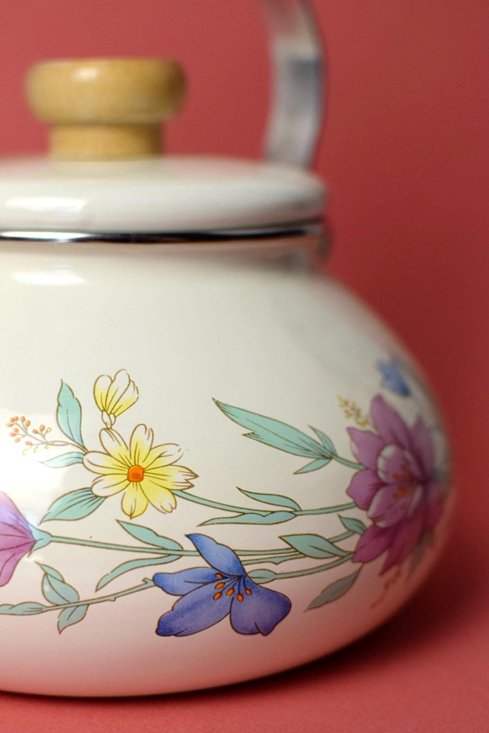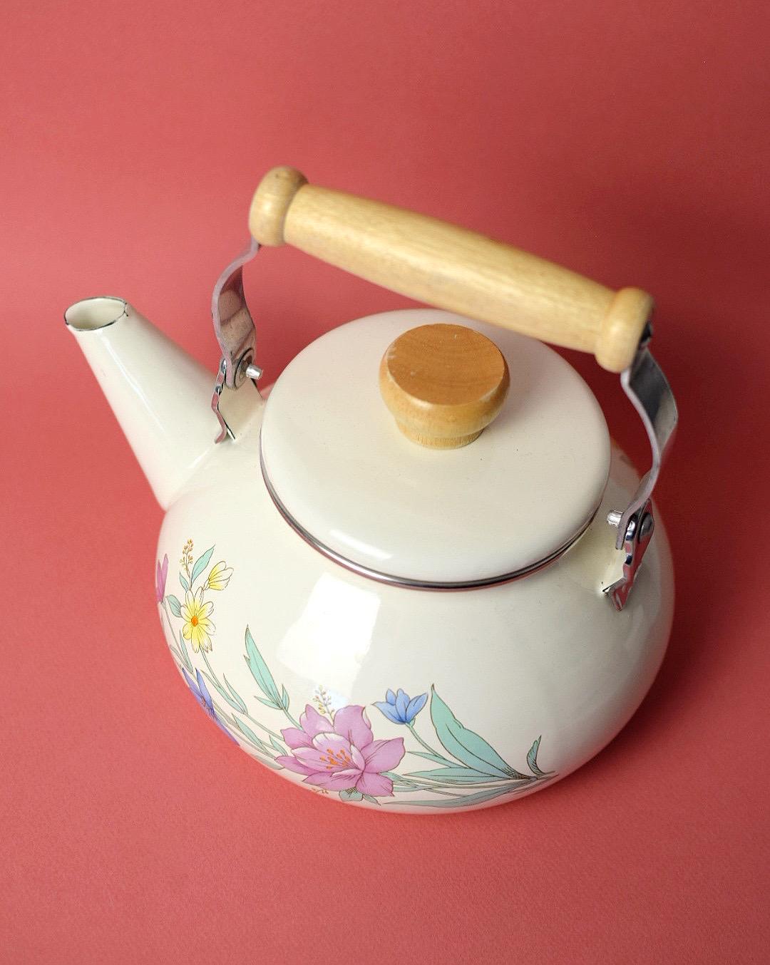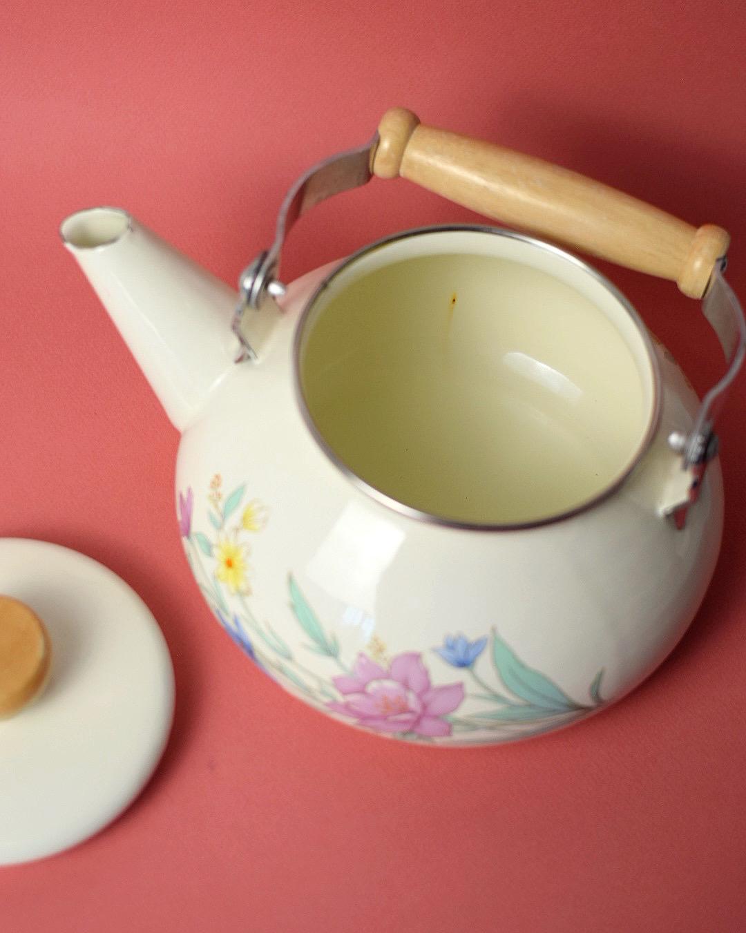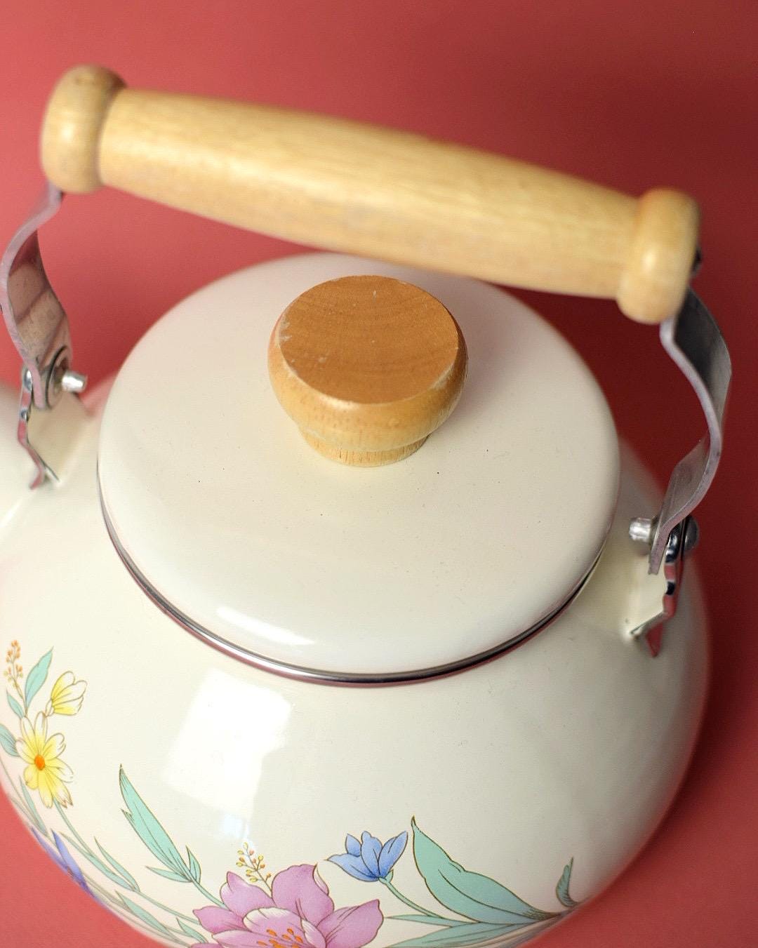Vintage Enamel Teapot with Floral Design | Circa 1980s | Cottagecore and Country Decor