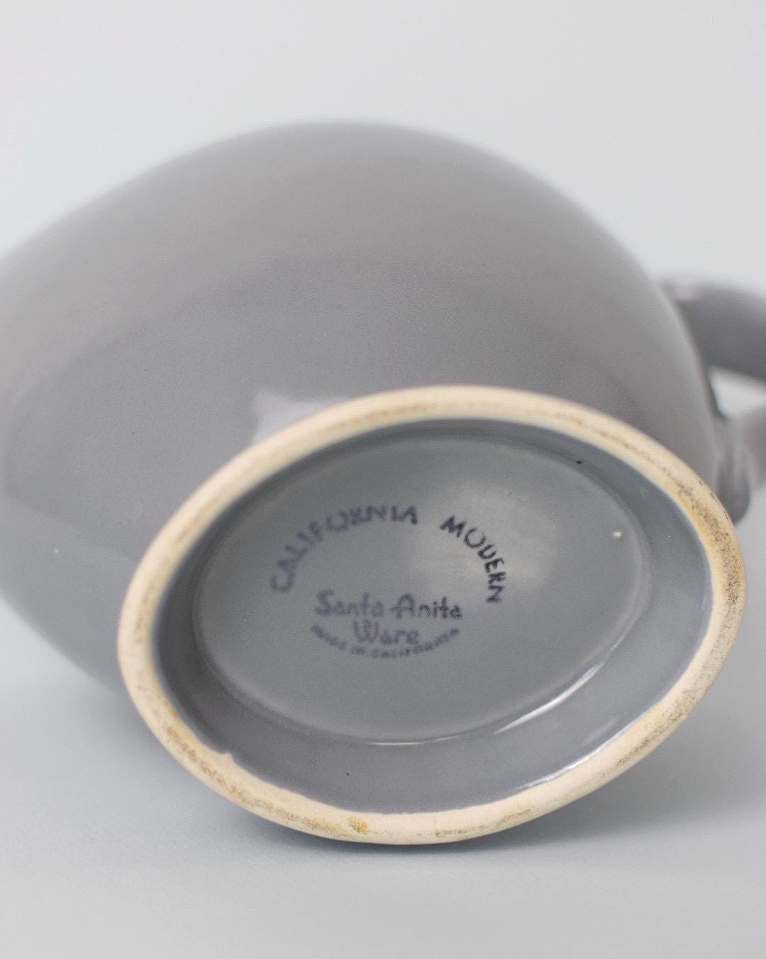 Bring mid‑century modern elegance to your collection with this sleek Santa Anita Pottery teapot, stamped “California Modern, Santa Anita Ware, Made in California” on the bottom. From the 1940s–50s, this blue‑gray ceramic gem is ideal for both functional use and display. With its streamlined, modernist silhouette and glossy blue‑gray glaze, this teapot embodies California’s iconic mid‑century flair and the coveted California Modern aesthetic.