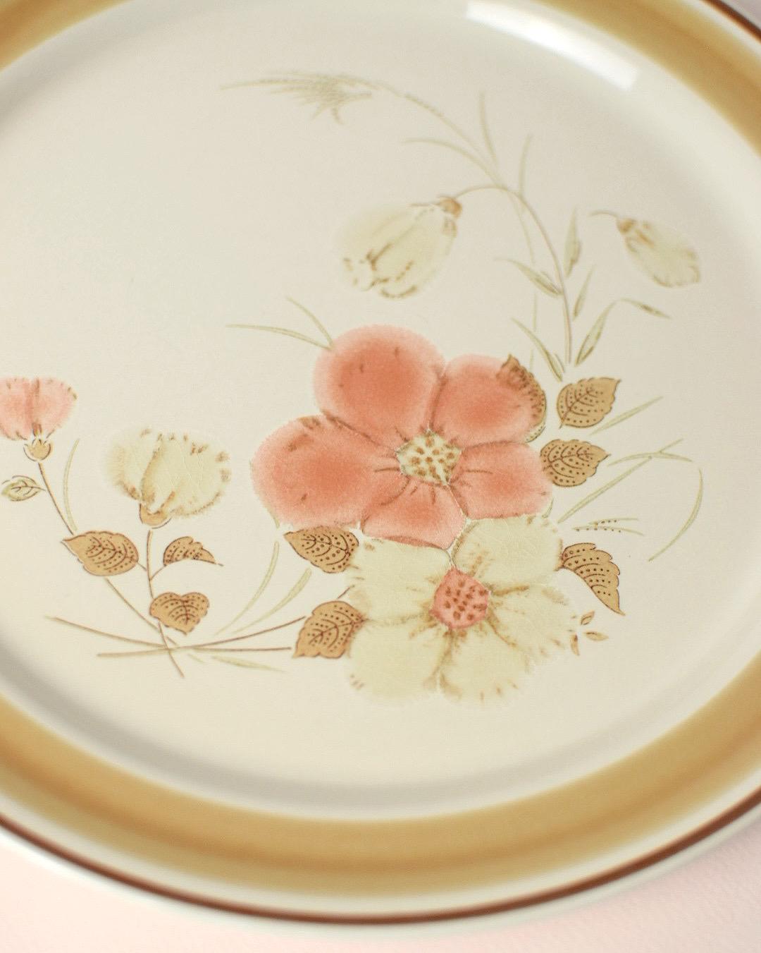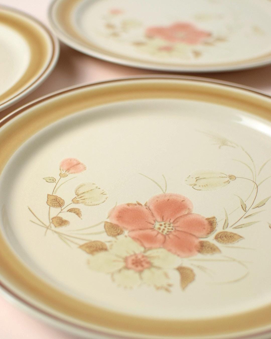 Add a soft vintage charm to your table with this gorgeous stoneware floral dinner plate by Hearthside. It is part of the Water Colors Blush pattern (Made in Japan). Perfect for collectors of 70s‑80s stoneware, floral patterns, or anyone looking to give their dining space a cozy, nostalgic glow. There are 4 plates available.