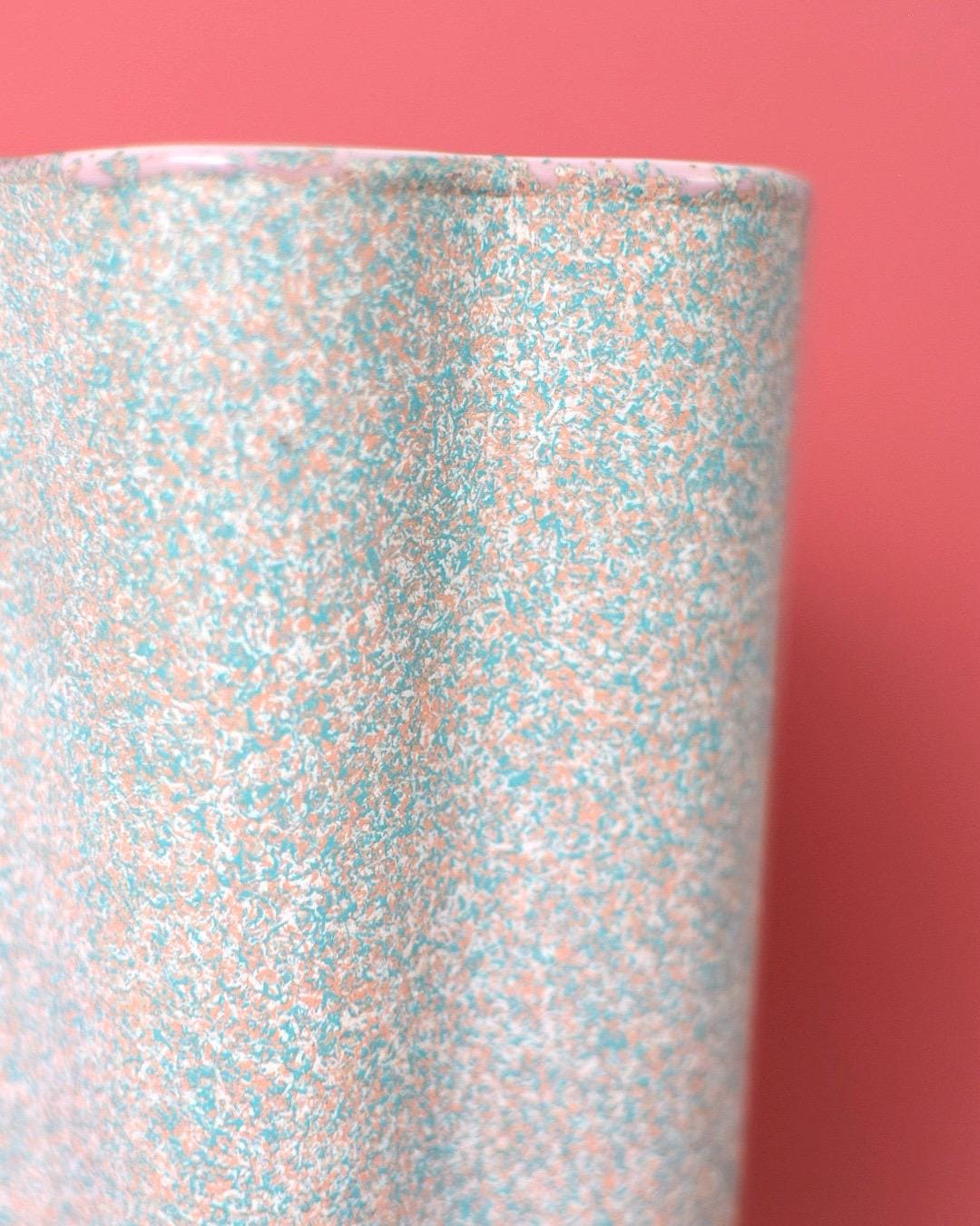 Vintage Shawnee Atomic Star Ceramic Vase #1013 | Pink with Teal Speckles | Mid Century Modern | 1960s