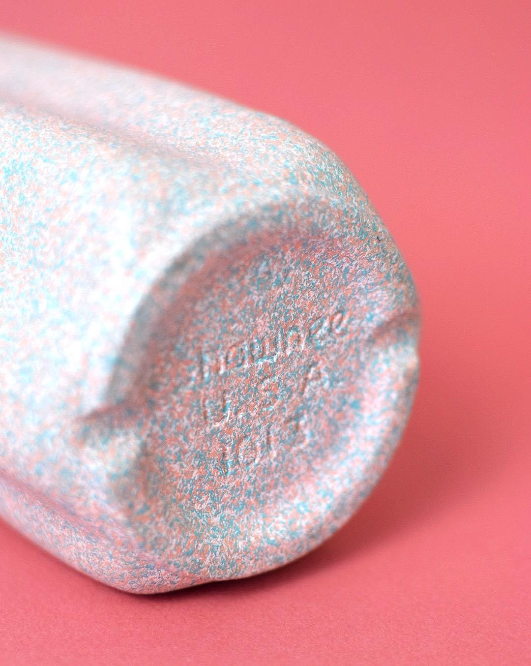 -Colors: Pink with light teal speckles