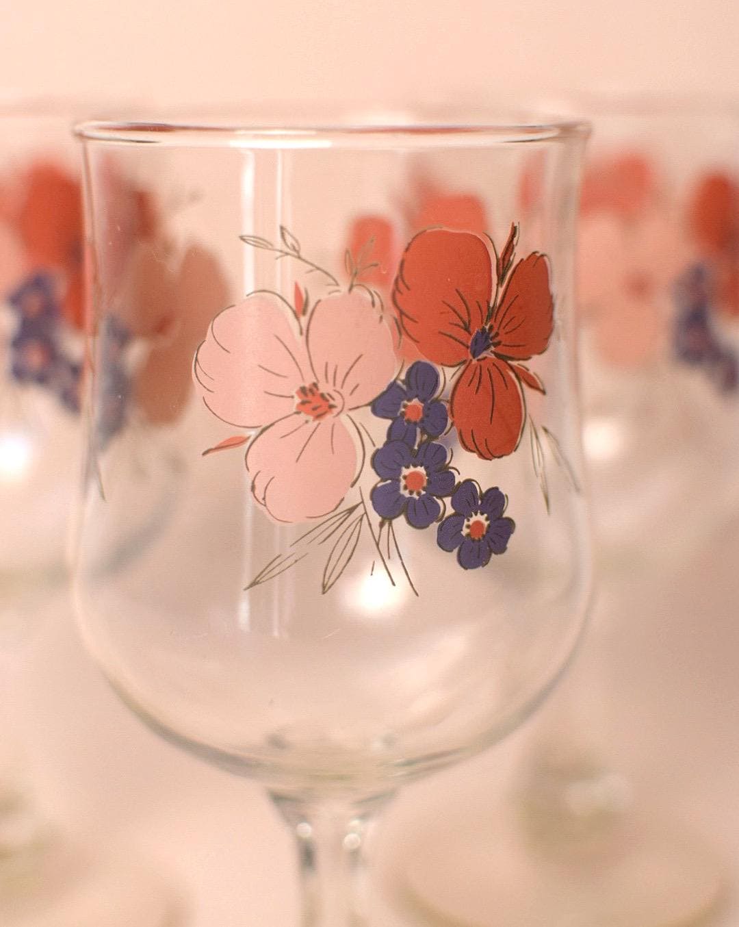 The classic goblet shape and botanical motif make these glasses ideal for wine, water, or special occasion table settings. Their timeless style fits beautifully with cottagecore, farmhouse, and vintage-inspired decor.