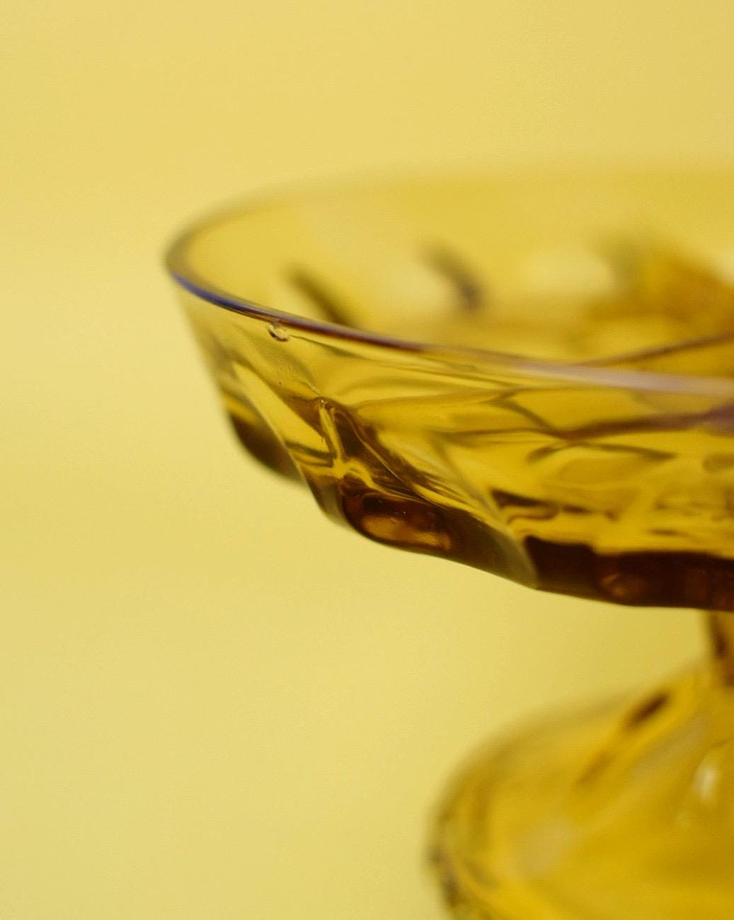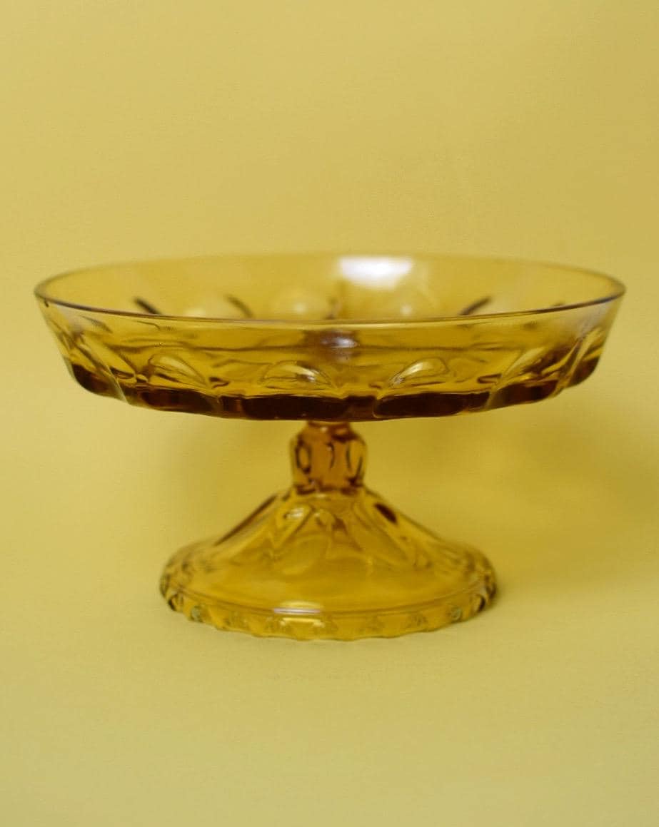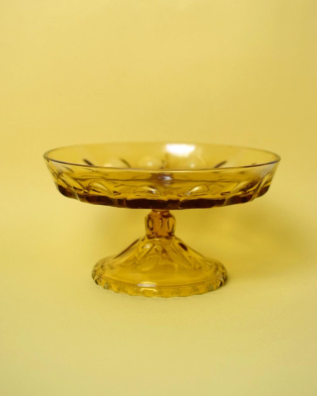 Vintage Amber Glass Pedestal Dish | Mid-Century Hazel Atlas | Thumbprint Design