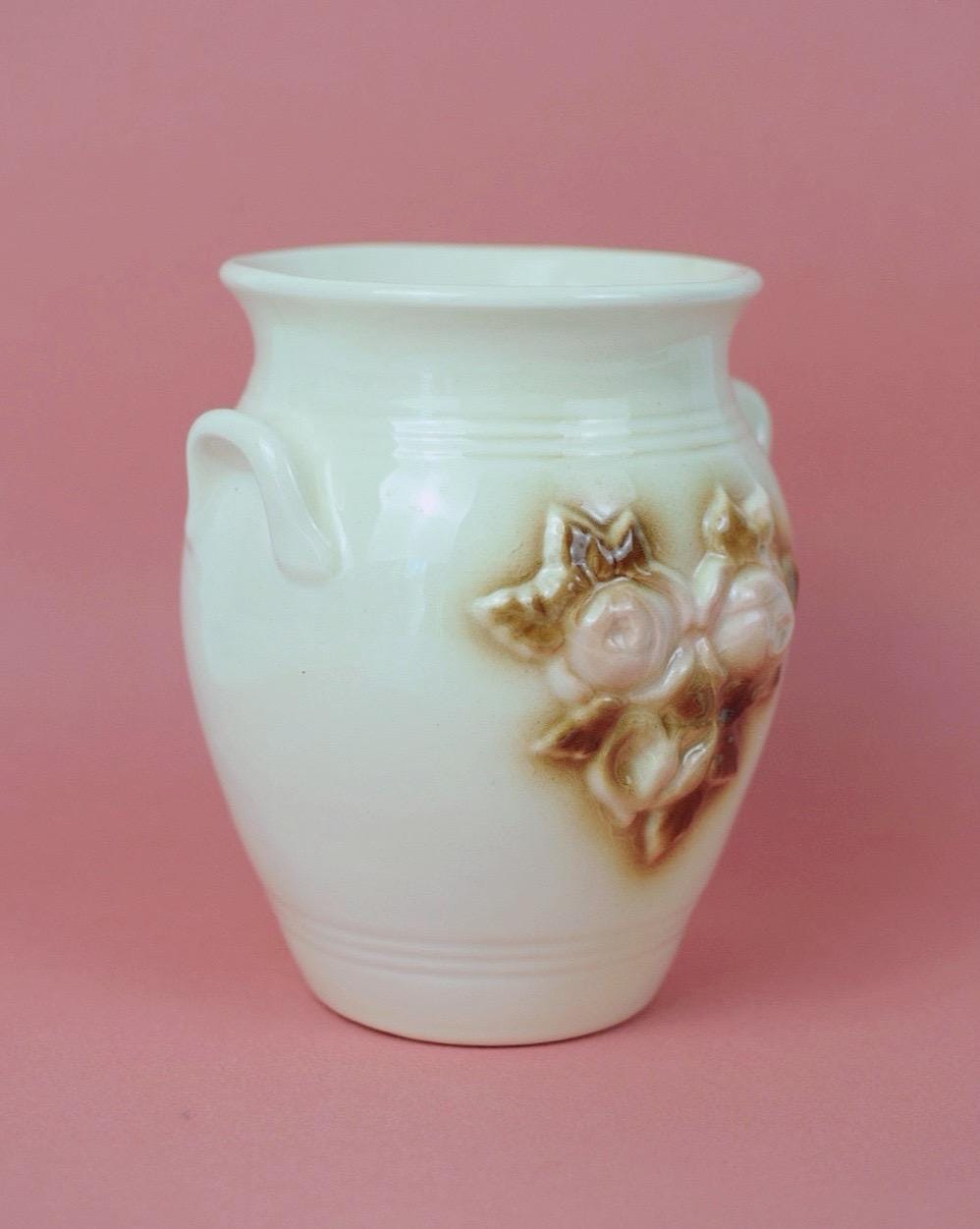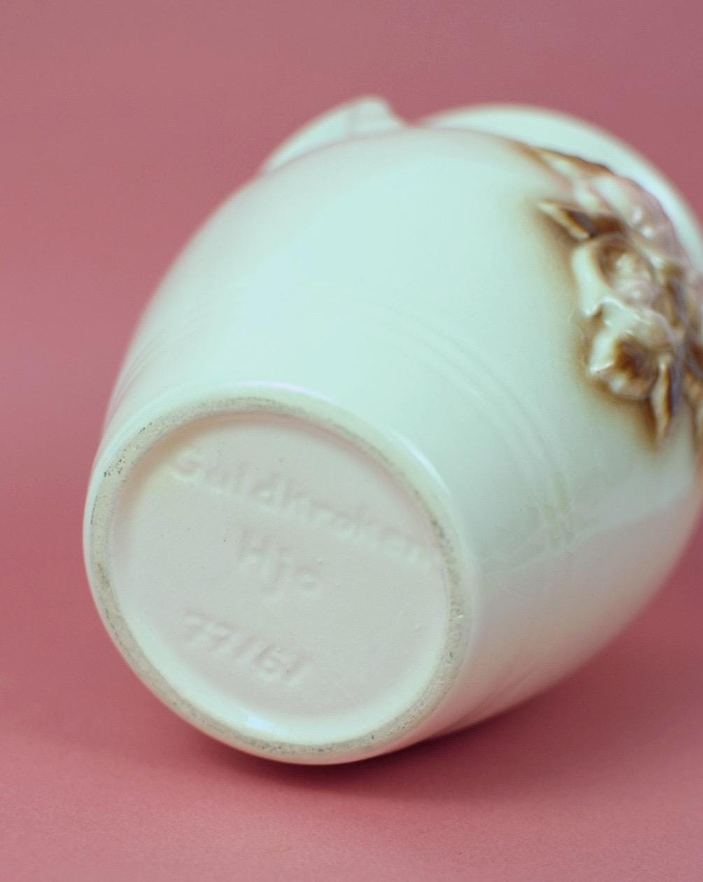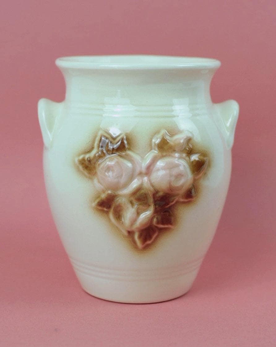 Vintage Pink Roses Crock Ceramic Vase | Guldkroken Hjo Sweden | Model 77161 | Romantic Cottage Decor